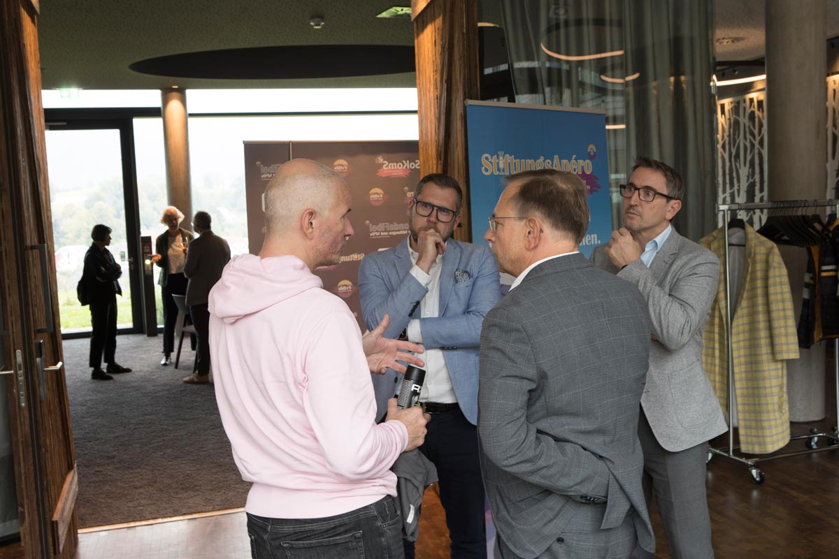 Mit Claus Walter von der Freiburger Vermögensmanagement (vorne mittig im Bild) ging Tobias Karow für den StiftungsApéro-typischen noch kurz ins Briefing, bevor die Impulse startete. Claus Walter kennt nicht nur die Stiftungen in und um Freiburg gut, er weiß auch, die Vermögensbelange von Stiftungen überhaupt sehr überlegt zu sortieren.